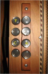 Omdat we nu bezig zijn om noten bij een akkoord te vinden, maken we een klein uitstapje naar andere knoppen aan de baskant, want......... alle tonen in het F-akkoord zijn ook separaat duwend te spelen.... en dat geeft mogelijkheden.....